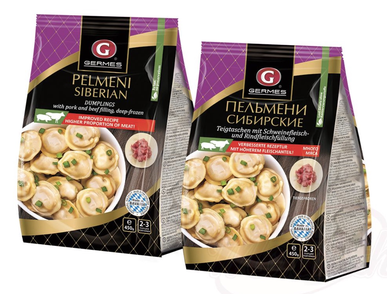 🇩🇪 "Germes" PELMENI NA TROICH, raviolis rellenos de carne de cerdo y ternera, 1 kg.
